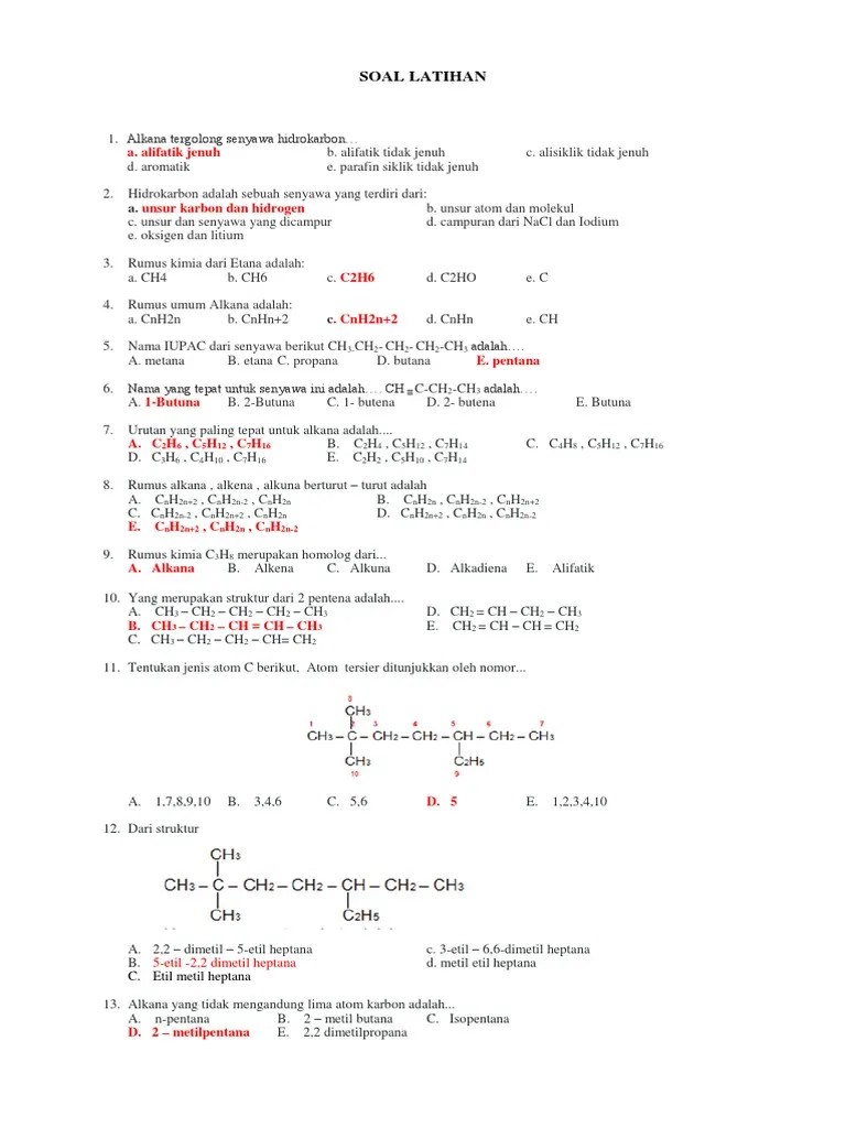 Salah satu sifat khas atom karbon yaitu dapat membentuk rantai. Senyawa alkana berikut ini yang tidak mengandung lima atom karbon adalah… Alkana yang tidak mengandung lima atom karbon yaitu. Senyawa alkana berikut yang tidak mengandung lima atom karbon adalah… a. Alkana yang tidak mengandung lima atom.